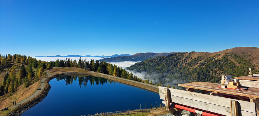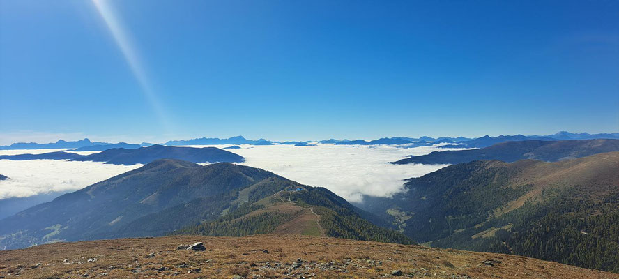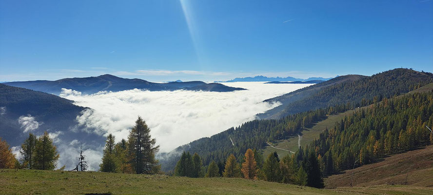 An einem wunderschönen Herbsttag waren wir in den Nockbergen unterwegs. Mit dem Auto nach Bad Kleinkirchheim St. Oswald. Mir der Bergbahn hinauf auf 1950 m., da ist man über der Nebelgrenze. Von hier aus kann man mehrere Gipfel erwandern. Wir waren auf den Gipfel des Mallnock auf 2226m. Sonnenschein und wunderschönes Herbstwetter waren unsere Begleiter. Wir haben einen Rundweg von ca. 3 Stunden gemacht. Bilder zum vergrößern bitte anklicken.